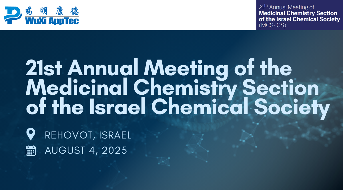 WuXi AppTec is delighted to join the 21st Annual Meeting of the Medicinal Chemistry Section of the Israel Chemical Society (MCS‑ICS), taking place August 4, 2025 at the Weizmann Institute of Science in Rehovot, Israel. As the national forum uniting medicinal chemistry and chemical biology experts from academia and industry, MCS‑ICS fosters interactions that bridge chemistry, biology, pharmacology, and pharmacy across Israel’s leading institutions.