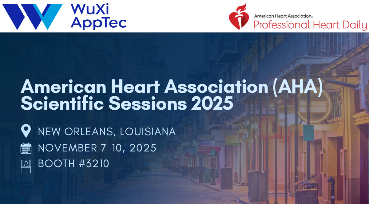 WuXi AppTec is pleased to participate in the American Heart Association (AHA) Scientific Sessions 2025, taking place November 7–10, 2025, at the Ernest N. Morial Convention Center in New Orleans, Louisiana. This flagship cardiovascular meeting brings together researchers, clinicians, and industry professionals from around the world to share pioneering insights into cardiovascular science, prevention, diagnostics, and therapeutics.