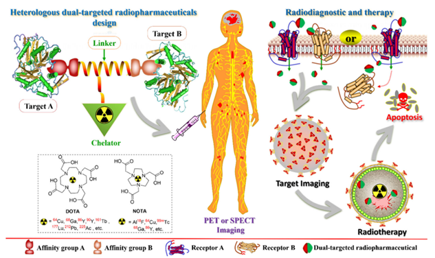 - Li, Z.; Ruan, Q.; Jiang, Y.; Wang, Q.; Yin, G.; Feng, J.; Zhang, J. Current status and perspectives of novel radiopharmaceuticals with heterologous dual-targeted functions: 2013–2023. J. Med. Chem. 2024, 67, 21644– 21670.