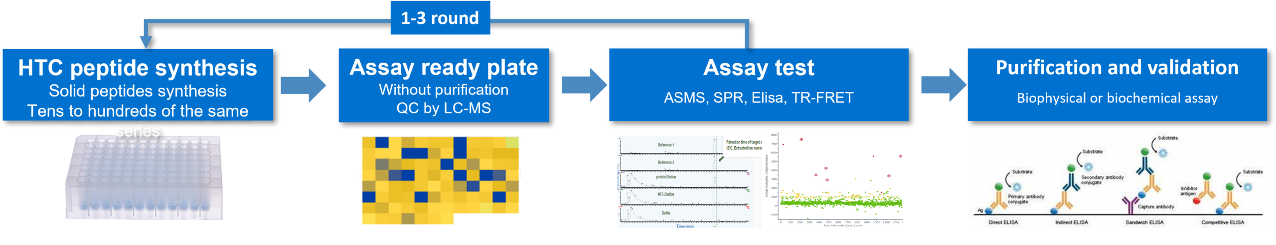 • Resynthesis and validation of screened hit peptides